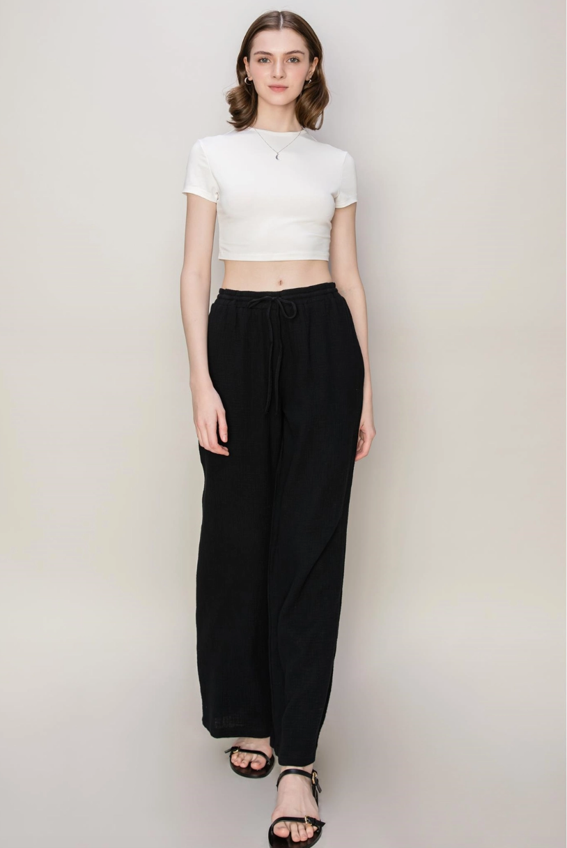 Smocked Printed High Waist Pants